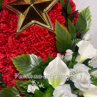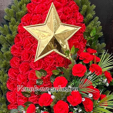 Модель идеально подходит для церемоний и мероприятий, где требуется официальная, строгая и выразительная композиция. Закажите прямо на Venok-na-zakaz.ru — мы оформим доставку и подготовим венок к отправке в сопровождении упаковки, защищающей декоративную звезду и букет.
