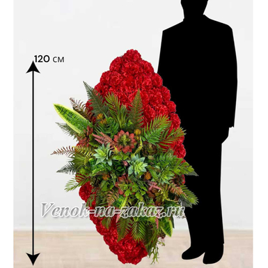 Ритуальный венок "АВТОРСКИЙ-5" высотой 120 см – идеальный выбор для выражения соболезнований от коллег, друзей и родных. Выполнен из премиум искусственных цветов (уникальные суккуленты, гвоздика, зелень) в элегантной красно-зеленой гамме.