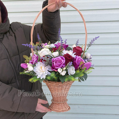 Ритуальная корзина сиреневая, Н-63 см D 40см