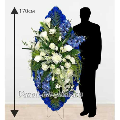 Элитный траурный венок "СУПЕРЭЛИТ-20" высотой 170 см – это величественное и достойное выражение скорби. Изготовлен из премиум искусственных цветов, точно имитирующих живые орхидеи, розы, каллы, пионы и гвоздики. Идеально подходит для прощания от коллектив